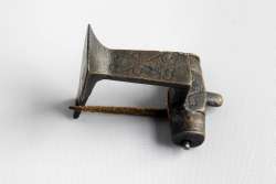 Objectnaam: Fibula Titel: fibula met brede scharnierarmen variant a Samenvatting: Gevonden dmv metaaldetectie. Vindplaats HW onbekend. Vinder onbekend. https://portable-antiquities.nl/pan/#/object/public/115426 |
