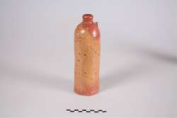 Objectnaam: Fles Titel: Steengoed geglazuurde mineraalwaterfles/jeneverkruik Samenvatting: https://archeologie.zuid-holland.nl/collectie?invnumber=9035 |