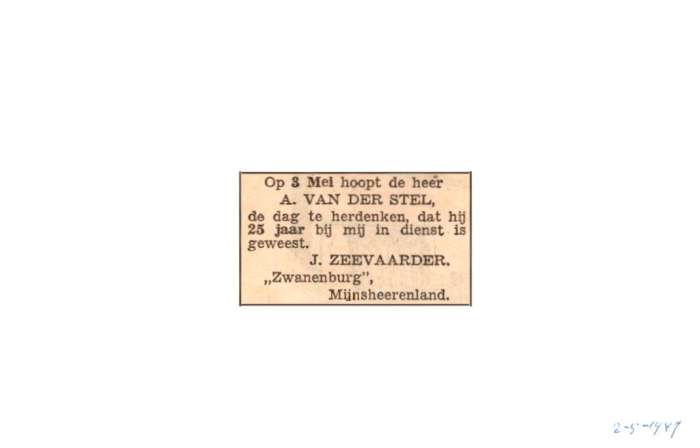 Stel, van der; A. Vos; J. 11-8-1945 |