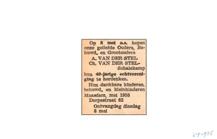 Stel, van der; A. Schalekamp; Ch. 8-5-1956 |