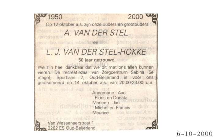 Stel, van der; A. Hokke; L.J. 12-10-2000 |