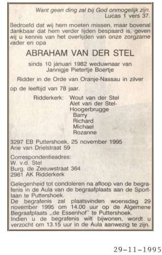 Stel, van der; Abraham Boertje; Jannigje Pietertje 28-11-1995 |
