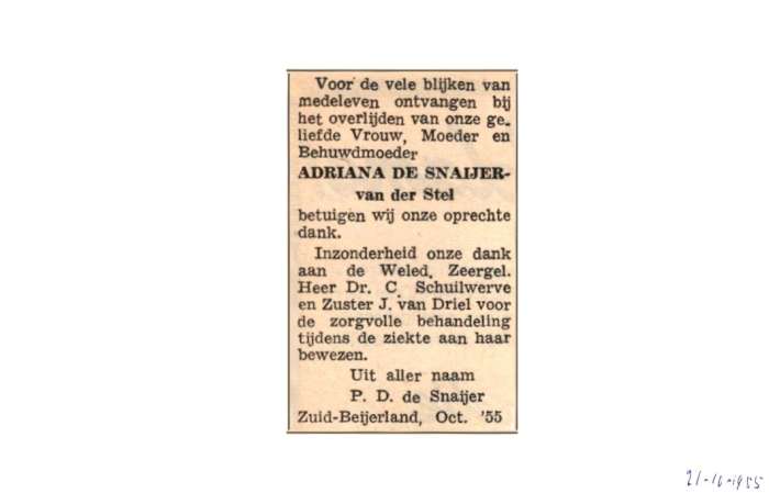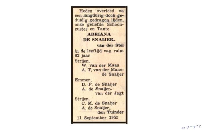 Stel, van der; Adriana Snaijer, de; P.D. 10-1955 |