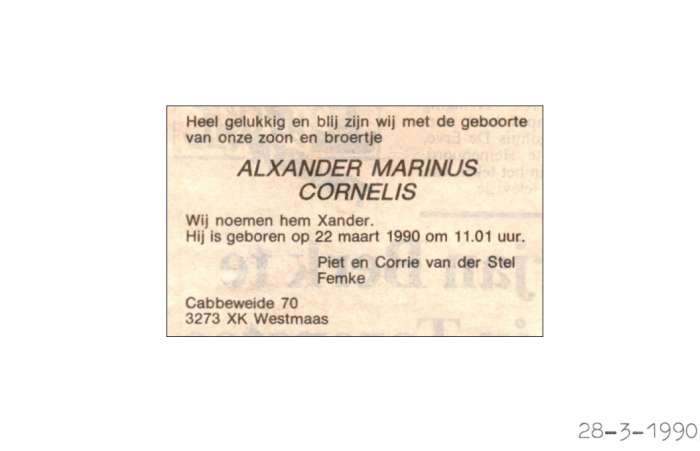 Stel, van der; Alxander Marinus Cornelis ; 22-3-1990 |