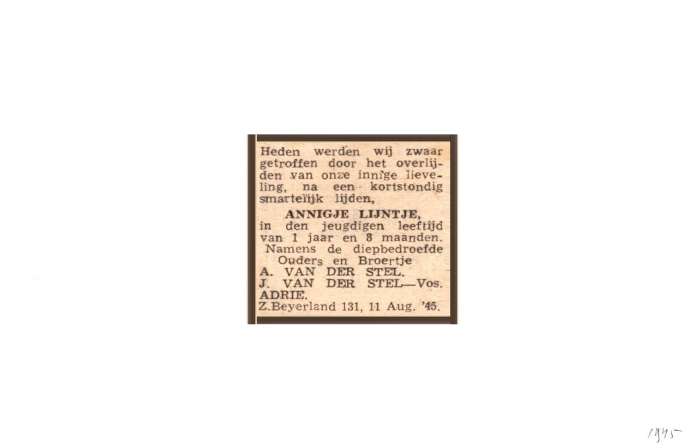 Stel, van der; Annigje Lijntje ; 11-8-1945 |