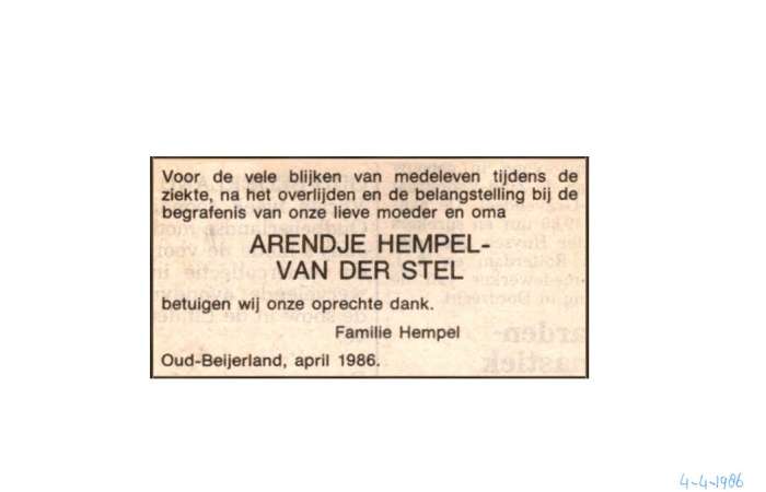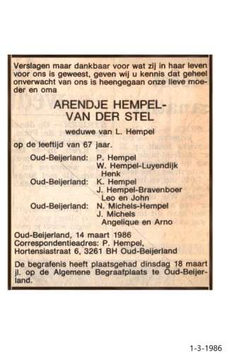 Stel, van der; Arendje Hempel; L. 14-3-1986 |