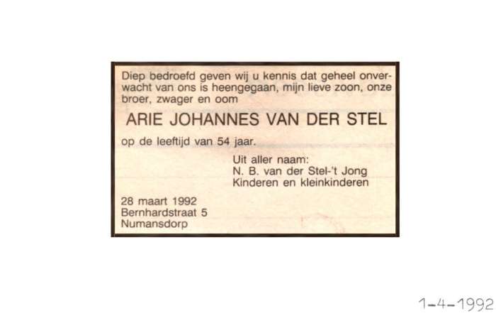 Stel, van der; Jong, 't; N.B. 28-3-1992 |