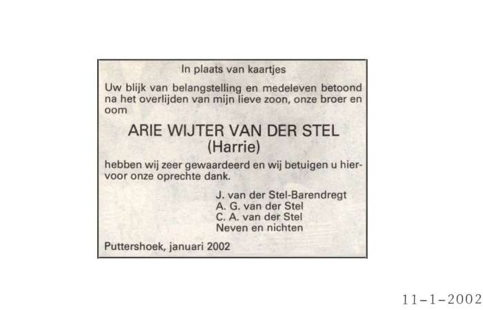 Stel, van der; A.W. ; Willy 13-4-1994 |
