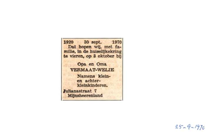 Vermaat; Welie; 30-9-1970 |