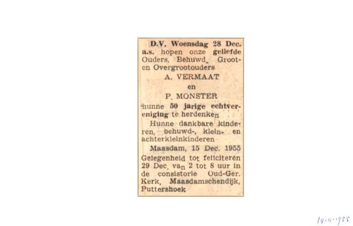 Vermaat; A. Monster; P. 28-12-1955 |