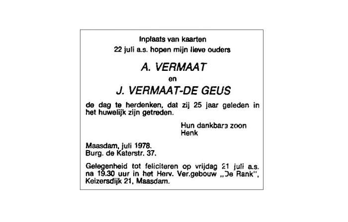 Vermaat; A. Geus, de; J. 22-7-1978 |