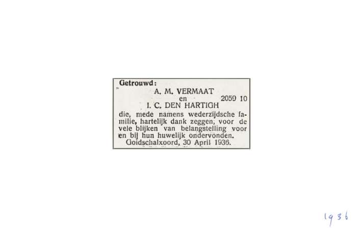 Vermaat; A.M. Hartigh, den; I.C. 30-4-1936 |