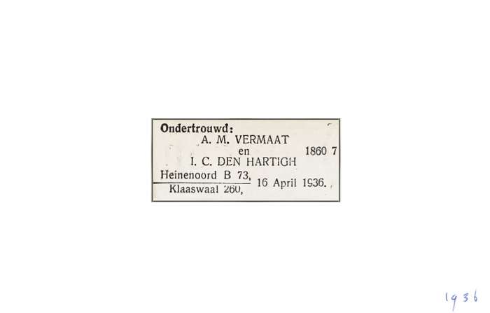 Vermaat; A.M. Hartigh, den; I.C. 16-4-1936 |