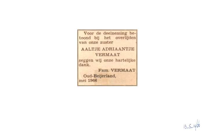 Vermaat; Aaltje Adriaantje ; 5-1966 |