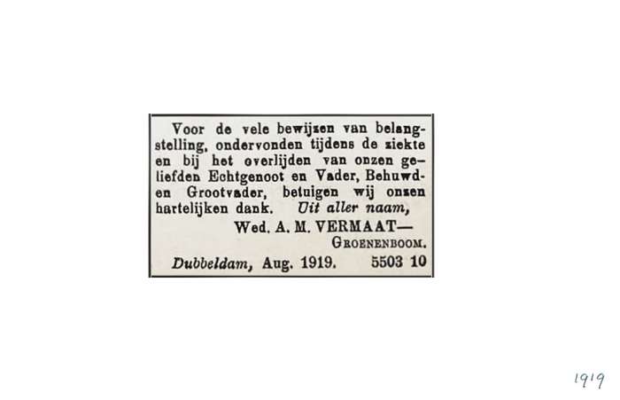 Vermaat; Groenenboom; A.M. 8-1919 |