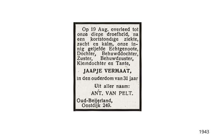 Vermaat; ; 19-8-1943 |