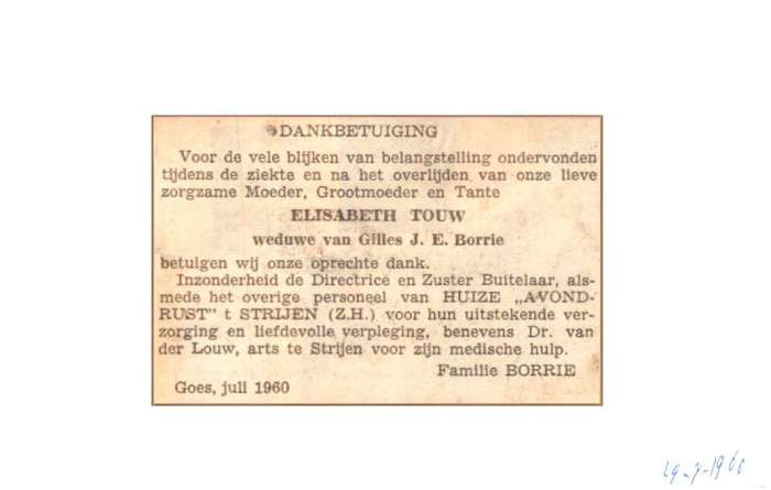 Touw; Elisabeth Borrie; Gilles J.E. 7-1960 |