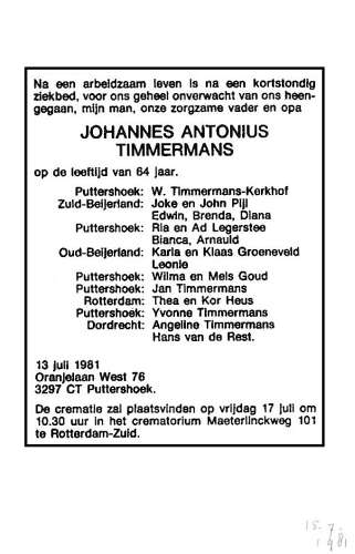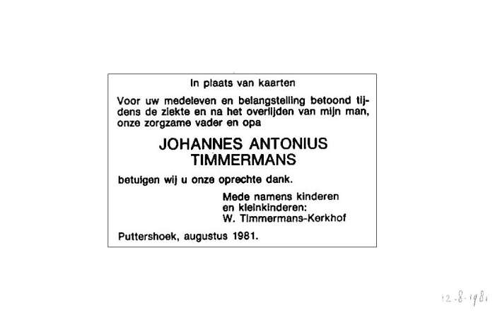 Timmermans; Johannes Antonius Kerkhof; W. 13-7-1981 |